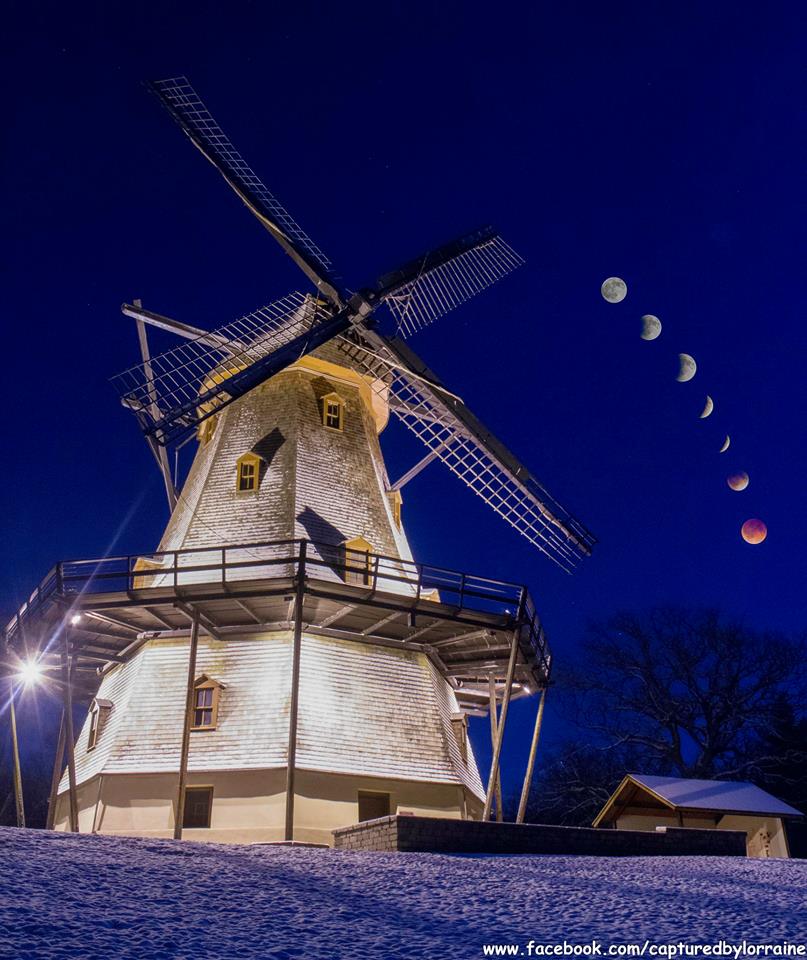 Lunar Eclipse Over Fabyan Windmill in Geneva Illinois by Lorraine Mahoney
